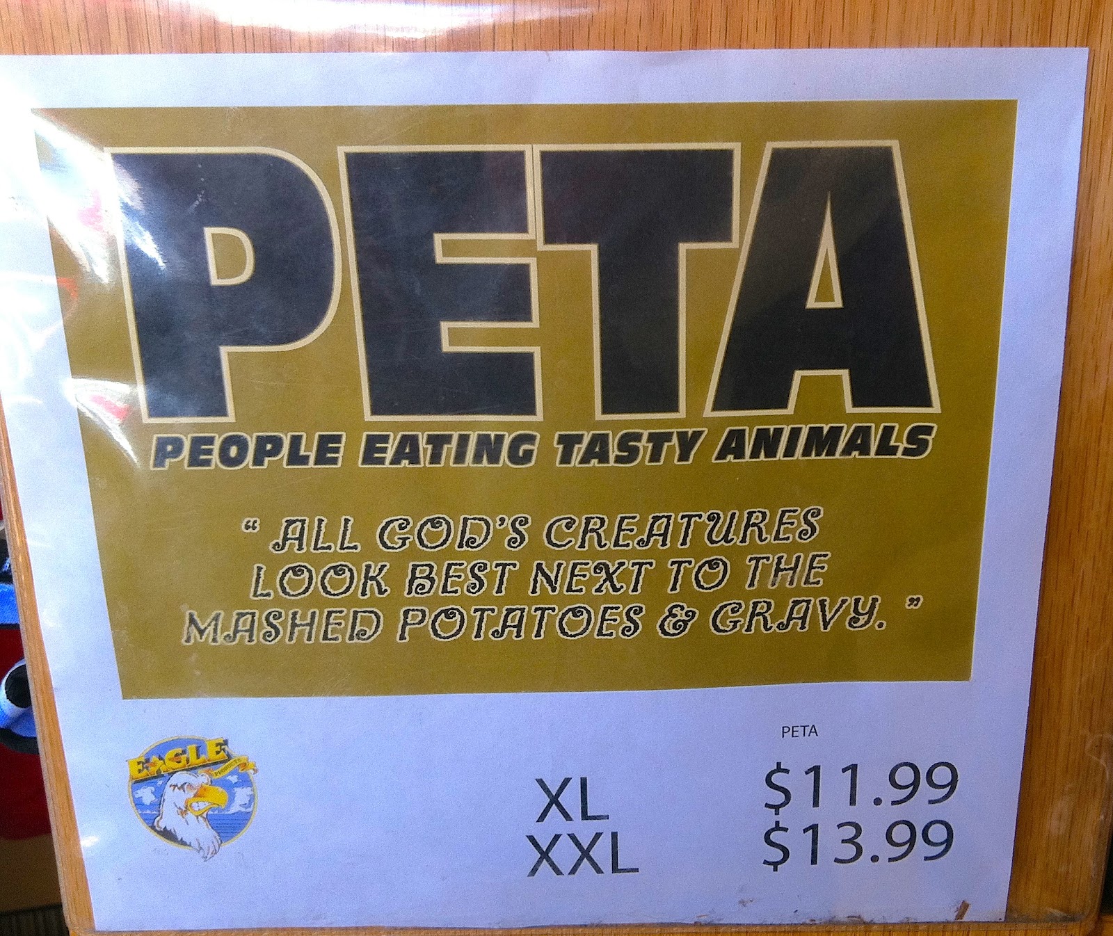 | "All God's creatures look bet next to the mashed potatoes and gravy." |