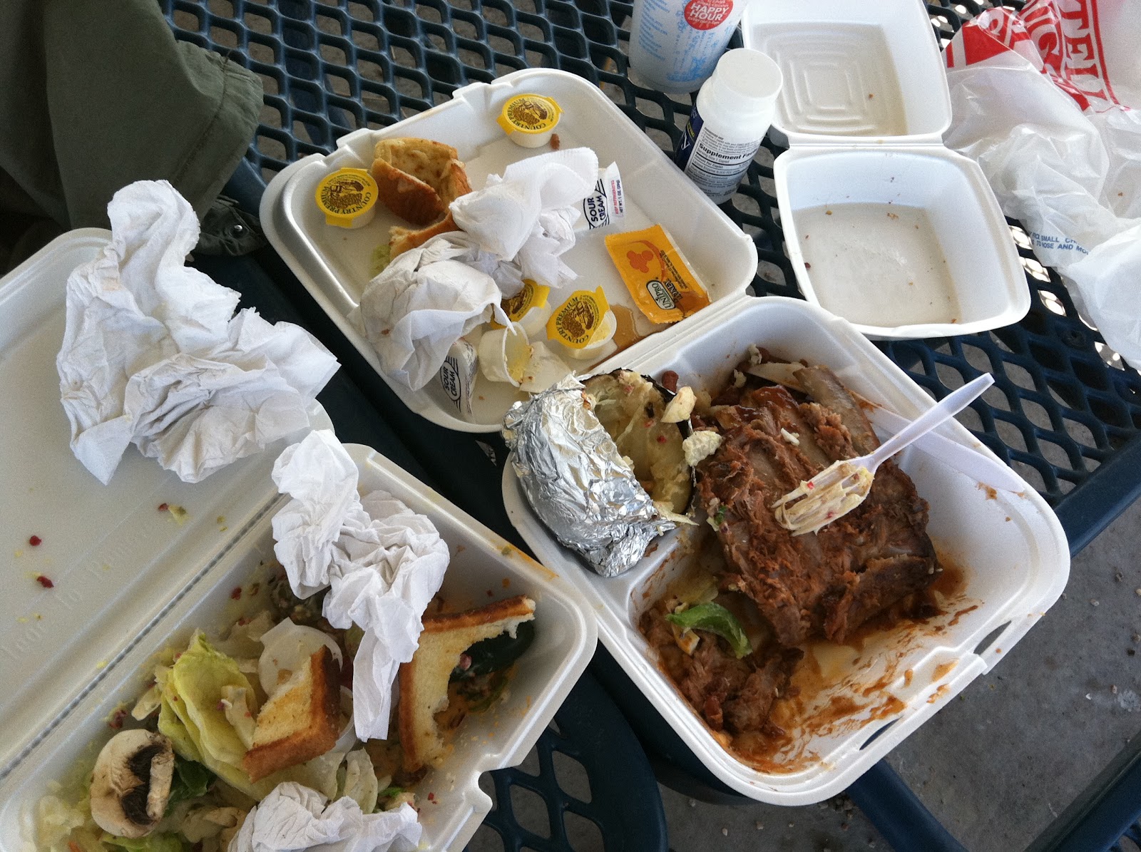 | I chose to get some ribs with the salad bar, which after tax and tip was about $12. |