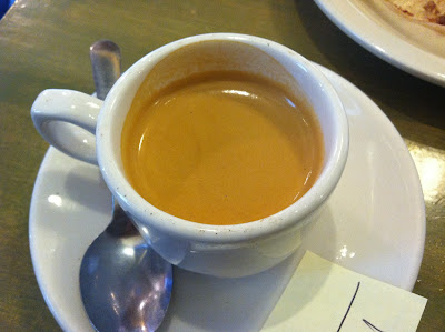 Coffee is simply my drug of choice. Much the way, while everyone else finds the odor unpleasantly pungent, potheads inhale the fumes of their greenery with delight; the way the slaves of painkillers actually chew their pills rather than, as those of us with a more casual relationship with the pills do, swallowing them; the way former heroin or meth addicts' eyes light up in tortured envy when they watch onscreen injections while the rest of us tightly shut out eyes during those movie scenes; much like those people, I enjoy the taste of thick, dark, unadulterated espresso. The only reason I ever get it americano-ed is to make the drinking of it last longer. And if you think that, like you might lick up the remaining specks of dust from a cut up pill or search the ground of your apartment for any leftover crystals of the drugs of more cash-flush days, if you think that in the same spirit I don't lick my drained espresso cup and then use my finger to scoop out any remaining foam, then you're mistaken.