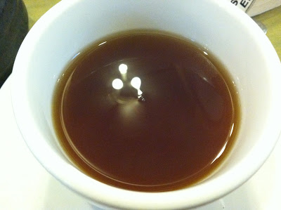 I'd been meaning to try some of their interesting teas (which they get from MEM Tea in Somerville) for forever, but I never got around to doing so until the espresso machine needed a break one day, and I had to wait about forty-five minutes for my espresso. This gave me the opportunity to have some tea and read for a while. I had to try the Pu-erh Tea first: