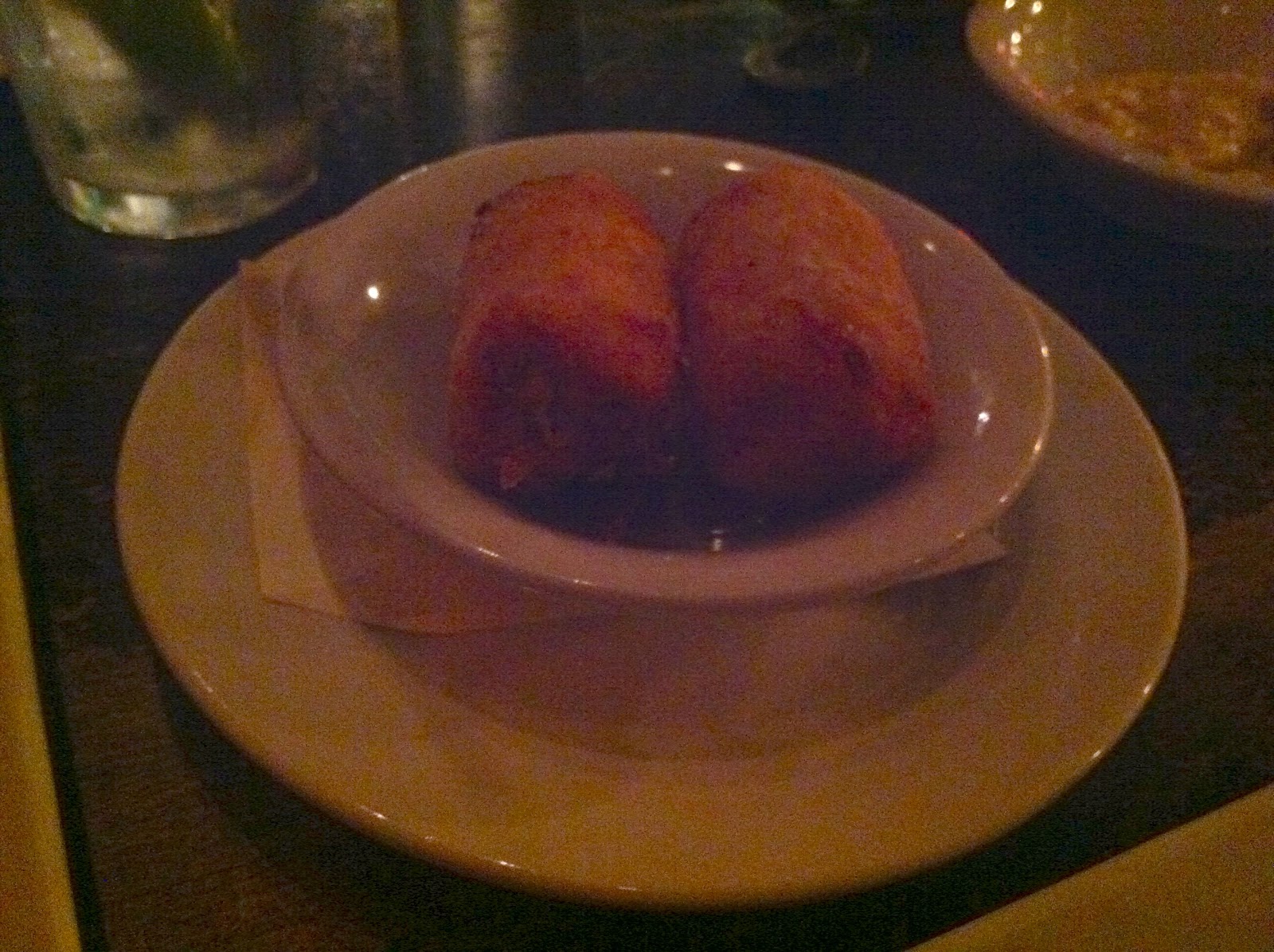 The host asked if we had reservations, which we didn't, but only three of the twelve or so tables were taken anyway. Perhaps the place's unbusiness should have been a red flag to us. He sat us down and told us this was his favorite table because he could just drink and drink there all night. Our waiter then approached and asked if we'd like sparkling, still or tap water. We both asked for sparkling. He returned later and told us they were out, so we got club sodas. Then he asked us if we'd care for anything "more adult." I found this to be a particularly silly and awkward way to put the question, especially since my girlfriend and I had just decided to go without alcohol for the two weeks leading up to Christmas. The expectation to order alcohol and disappointment at the failure to do so are totally understandable for the tipped, but I believe part of good service is keeping that shit to yourself and being gracious to all your customers. He wasn't horrible about it by any means, but the wording of the host and server betray to me a disturbing lack of acceptability to not drink on a Wednesday night.
